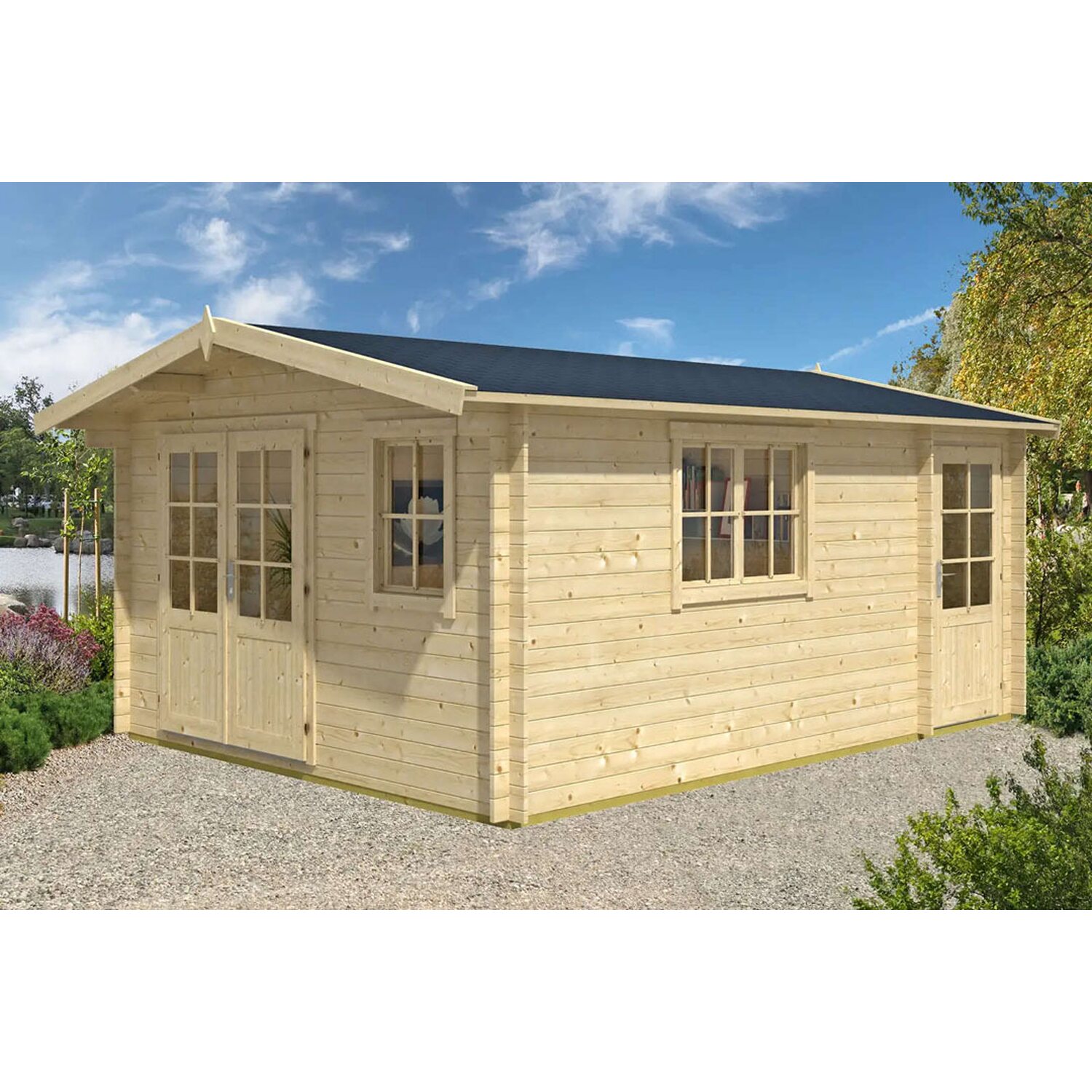 Fenster und Türen sind in der Regel optional erhältlich und nicht standardmäßig im Lieferumfang enthalten. Bitte beachten Sie die jeweiligen Produktinformationen.