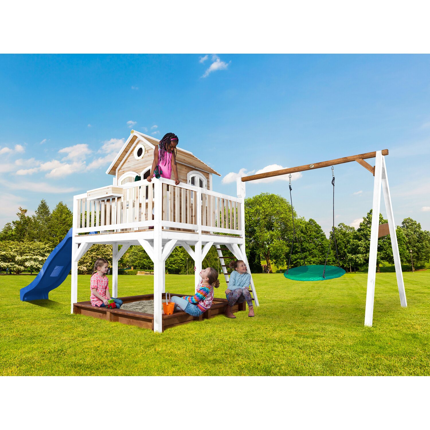 Axi Liam Spielhaus mit Summer Nestschaukel Braun – Weiß mit Blauer Rutsche