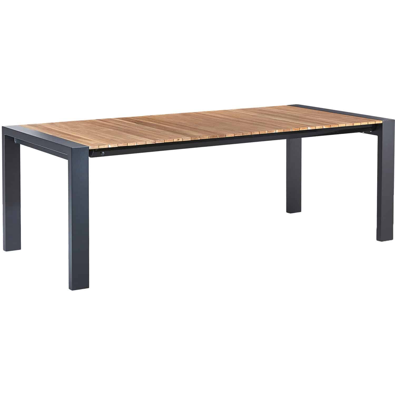 Der Best Ausziehtisch Langreo besticht durch seine hochwertige Materialauswahl. Das Gestell aus pulverbeschichtetem Aluminium in Anthrazit ist nicht nur äußerst stabil und witterungsbeständig, sondern verleiht dem Tisch auch eine moderne und elegante Optik. Die Tischplatte aus massivem Teakholz bildet einen warmen und natürlichen Kontrast zum kühlen Anthrazit und sorgt für ein behagliches Ambiente.