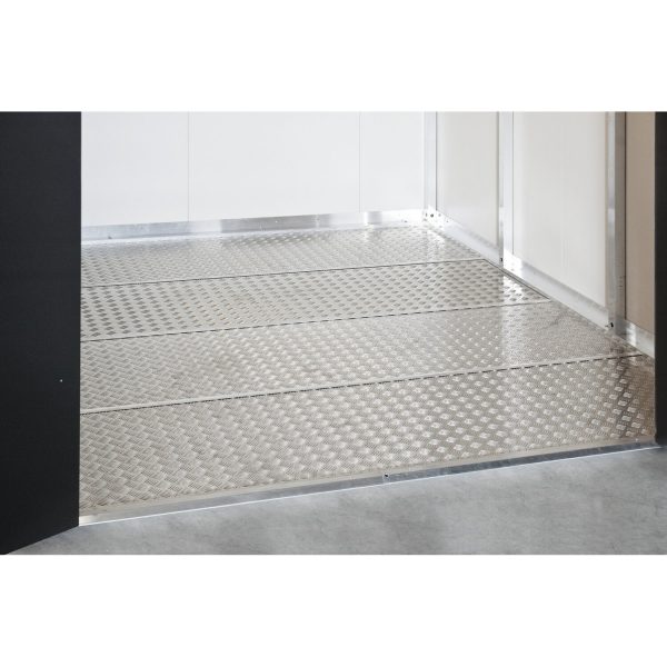 - Hochwertiges Material: Die Bodenplatte besteht aus verzinktem Stahlblech, das äußerst robust und langlebig ist. Sie ist resistent gegen Rost und Witterungseinflüsse und hält auch hohen Belastungen stand.