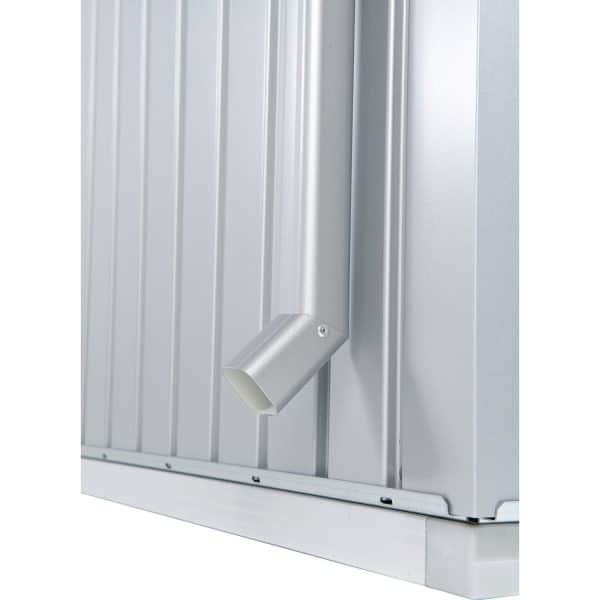 Das Regenfallrohr-Set ist in der Farbe Silber-Metallic pulverbeschichtet. Diese elegante Farbe harmoniert perfekt mit dem modernen Design der Biohort HighLine Gerätehäuser und Panorama Gerätehäuser.