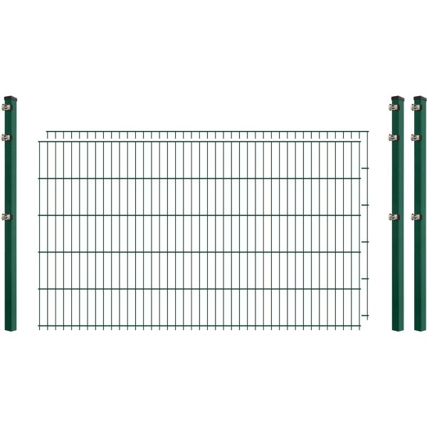 Einsteiger-Zaunset 5/4/5 Doppelstab 2 Matten + 3 Pfosten 250/103 cm Dunkelgrün