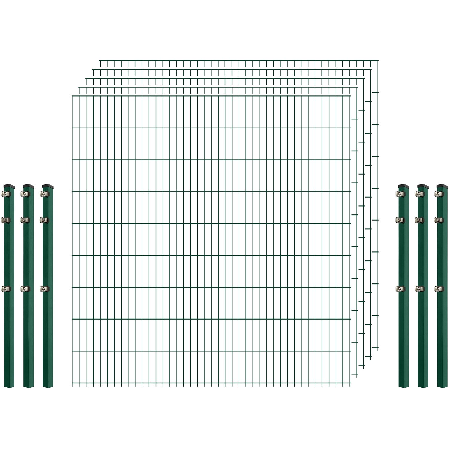 Einsteiger-Zaunset 5/4/5 Doppelstab 5 Matten + 6 Pfosten 250/183 cm Dunkelgrün