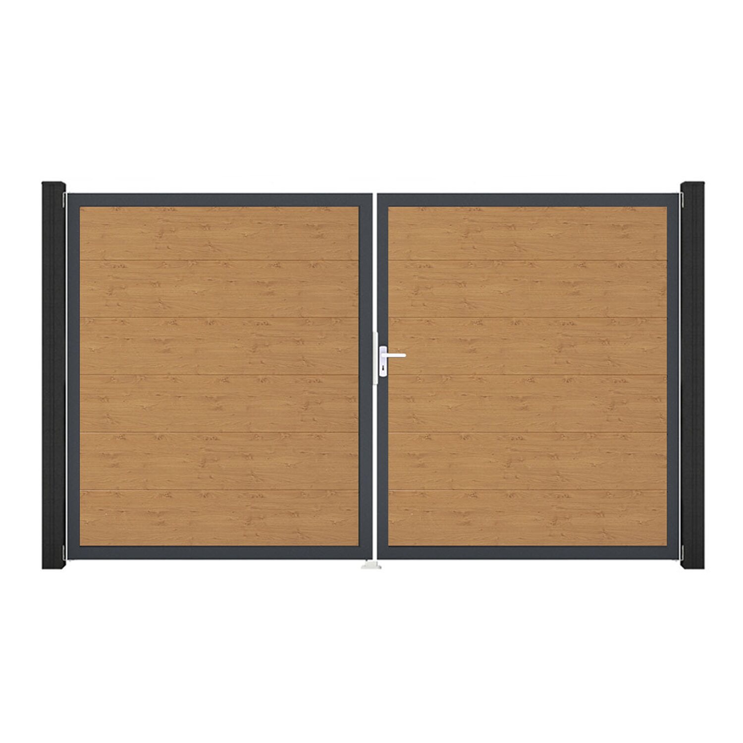 Das GroJa Steckzaun Tor BasicLine DIN Rechts DB Asteiche Natur ist die perfekte Wahl für alle, die auf der Suche nach einem hochwertigen und langlebigen Tor für ihren Gartenzaun sind. Das Tor in astreicher Natur-Optik verfügt über einen umlaufenden Rahmen aus Aluminium, der pulverbeschichtet ist und in verschiedenen Farben erhältlich ist. Dadurch ist das Tor nicht nur besonders stabil, sondern sieht auch noch toll aus. Alle Bestandteile des Tors sind aus hochwertigen Materialien gefertigt, die Wind und Wetter trotzen und garantiert rostfrei sind. Das Tor ist 2-flügelig und wird inklusive Beschlagset geliefert. Das BPC-Profil und der Aluminium-Rahmen machen das Tor besonders witterungsbeständig und langlebig. Zudem ist es pflegeleicht und einfach zu reinigen. Das GroJa Steckzaun Tor BasicLine ist ein Muss für jeden Gartenbesitzer. Bitte beachten Sie, dass die Pfosten nicht im Lieferumfang enthalten sind.