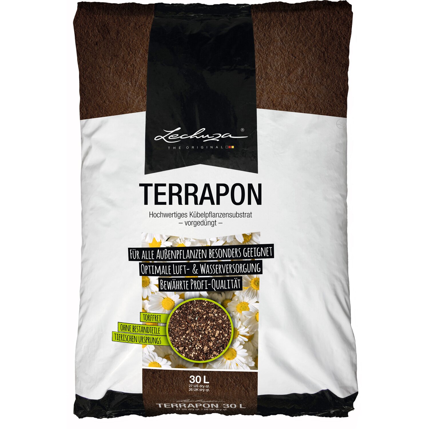Das Lechuza Terrapon 30 l kombiniert die Vorzüge von organischem Humus mit mineralischen Komponenten wie Bims und gebrochenem Blähton. Das neue Substrat wird aus hochwertigen Rohstoffen, so wie sie auch im professionellen Gartenbau verwendet werden, hergestellt: Bims, gebrochener Blähton und eine wirksame Düngerkombination. Der Anteil an frischem Naturton wirkt als natürlicher Wasser- und Nährstoffspeicher und fördert die gleichmäßige Versorgung der Pflanzen. So werden Schwankungen abgepuffert und Trocken- oder Nässeperioden besser überstanden. Terrapon kann zum Einpflanzen fast aller Zimmer-, Balkon- und Gartenpflanzen verwendet werden, mit Ausnahme von Moorbeetpflanzen, die besondere Anforderungen an den pH-Wert des Substrates stellen. Hier sollte eine entsprechende Spezialerde verwendet werden. Orchideen, die ebenfalls sehr spezielle Anforderungen an das Pflanzsubstrat stellen, sollten ausnahmslos in Lechuza-Pon gepflanzt werden.