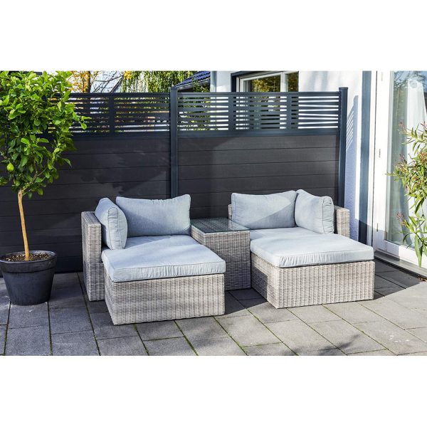 Die flexiblen Elemente ermöglichen es dir, das Lounge-Set ganz nach deinen individuellen Bedürfnissen und räumlichen Gegebenheiten zu arrangieren. Ob als großzügige Ecklounge für gesellige Abende oder als separate Sitzgruppen für entspannte Stunden zu zweit – deiner Kreativität sind keine Grenzen gesetzt.