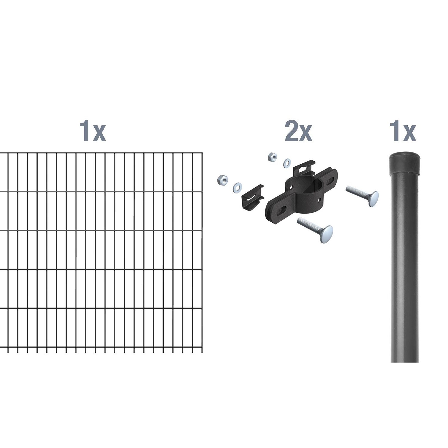 Einstab-Gittermatte ist eine robuste und praktische Alternative zur Abgrenzung für Haus und Garten und bietet zertifizierte Qualität und Lebensdauer. Die Gittermatten sind aus verzinktem Draht gefertigt und werden anschließend pulverbeschichtet mit hoher Haftung. Die Einstab-Gittermatte hat eine Maschenweite von 50 x 250 mm und einen Drahtdurchmesser von 8/6/4 mm. Technische Daten des Sets: Zaun-Anbauset Einstabmatte Material: Stahl, roh Oberfläche: verzinkt und Anthrazit-Metallic kunststoffbeschichtet Aufstellung: zum Einbetonieren, Zaunlänge: 2 m, Zaunhöhe: 750 mm Das Set besteht aus folgenden Einzelteilen: 1 x Einstab-Gittermatte, Anthrazit-Metallic kunststoffbeschichtet, 1 x Zaunpfosten Einstab-Gittermatte, Anthrazit-Metallic kunststoffbeschichtet, zum Einbetonieren 2 x Doppelschelle, anthrazit, 34 mm Durchmesser Technische Daten Zaunfeld: Mattenbreite: 2000 mm Höhe: 750 mm Technische Daten Zaunpfosten: Länge: 1225 mm für Feldhöhe: ca. 750 mm Pfostenstärke: Ø34 mm Mit diesem Anbau-Set lässt sich das passende Grundset auf jede beliebige Länge erweitern.