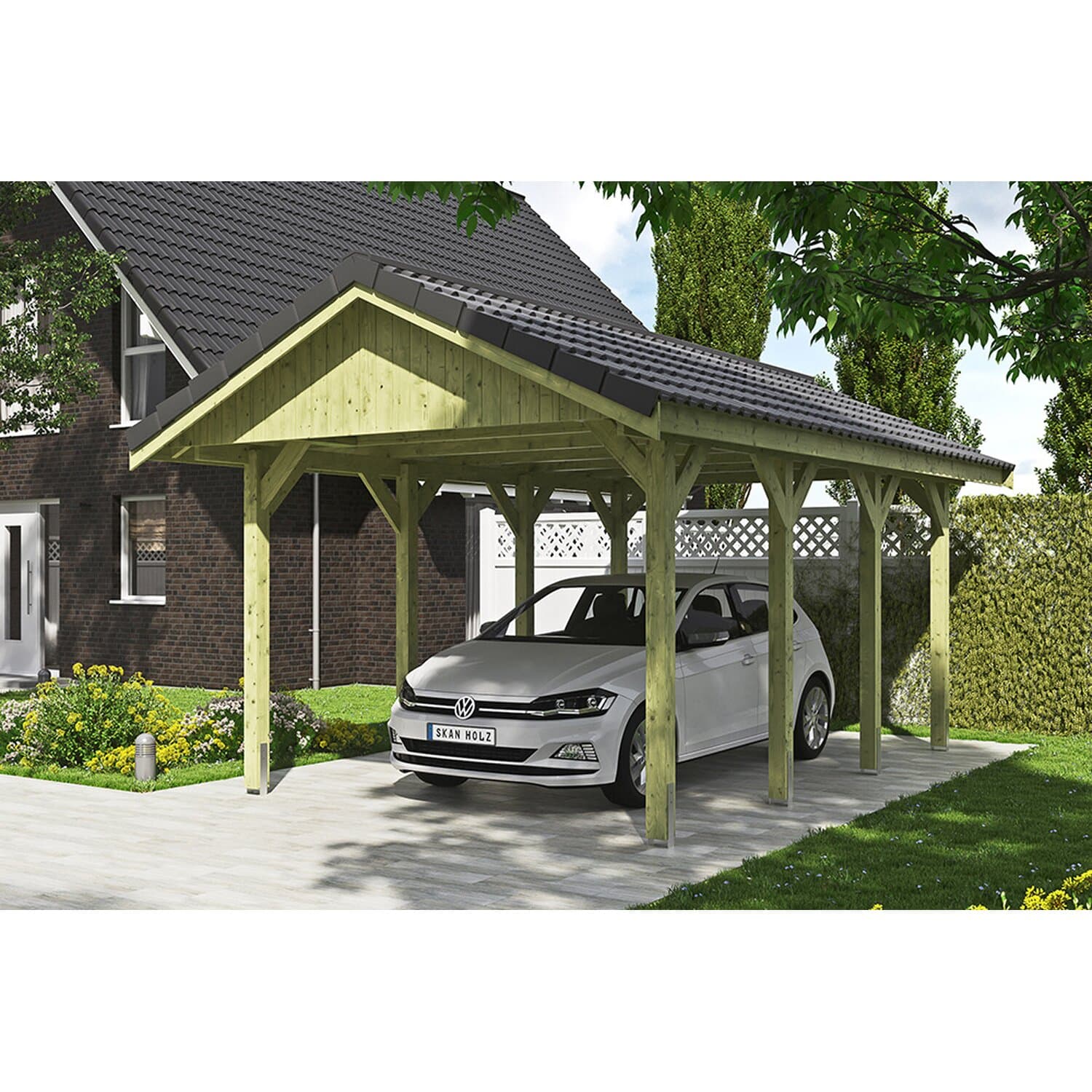Das Carport Wallgau bietet Ihnen zahlreiche Möglichkeiten, es an Ihren individuellen Geschmack und die Optik Ihres Hauses anzupassen. Wählen Sie die passende Dacheindeckung, um das Carport perfekt in Ihr Gartenambiente zu integrieren. Ob klassische Dachziegel, moderne Blechplatten oder eine naturnahe Begrünung – Ihrer Kreativität sind keine Grenzen gesetzt.