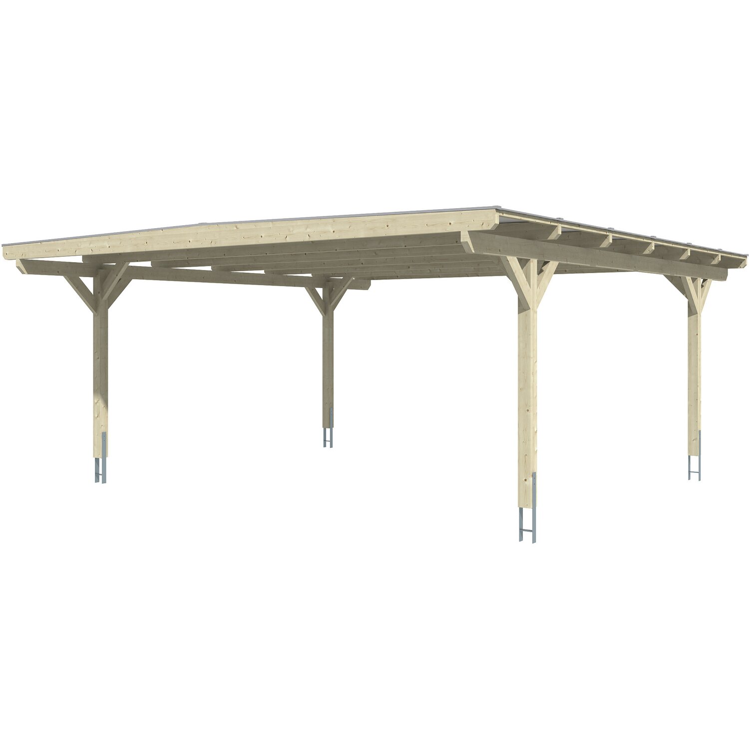 Hier finden Sie alle wichtigen technischen Details und Abmessungen des Skan Holz Carport Odenwald Eiche hell: