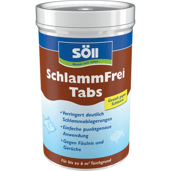 Dank ihrer praktischen Tablettenform sind Schlamm Frei Tabs die Lösung zum gezielten Abbau von organischem Schlamm im Gartenteich. Die patentierte Mineralienkombination reduziert aktiv die Schlammschicht. Insbesondere für kleinere Teiche sind Schlamm Frei Tabs optimal. Schlamm Frei Tabs sind auch ideal für die Behandlung von Problemzonen geeignet, in denen sich besonders viel Schlamm angesammelt hat. Zudem werden faulige Gerüche sofort neutralisiert.