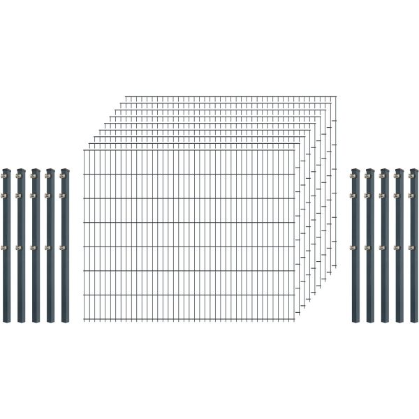 Unser Standard-Zaunset 6/5/6 Doppelstab Anthrazit besteht aus: