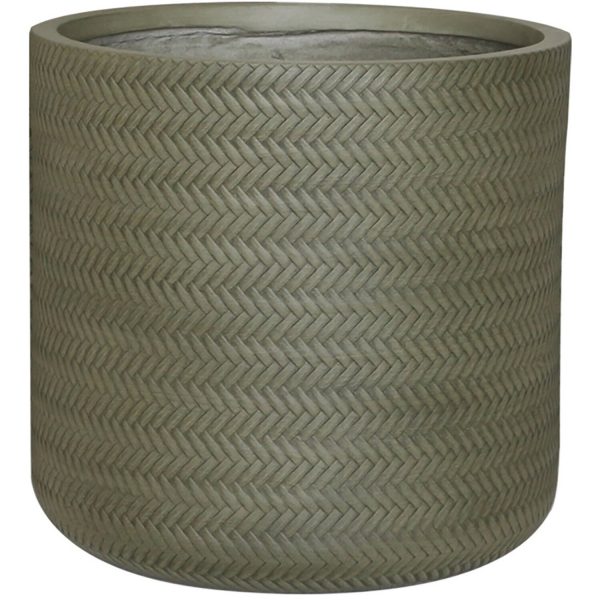 Lassen Sie sich von der Schönheit und Funktionalität des runden Fibre-Clay Übertopfs mit Zopfmuster in Grün inspirieren und verwandeln Sie Ihren Garten in ein Paradies!