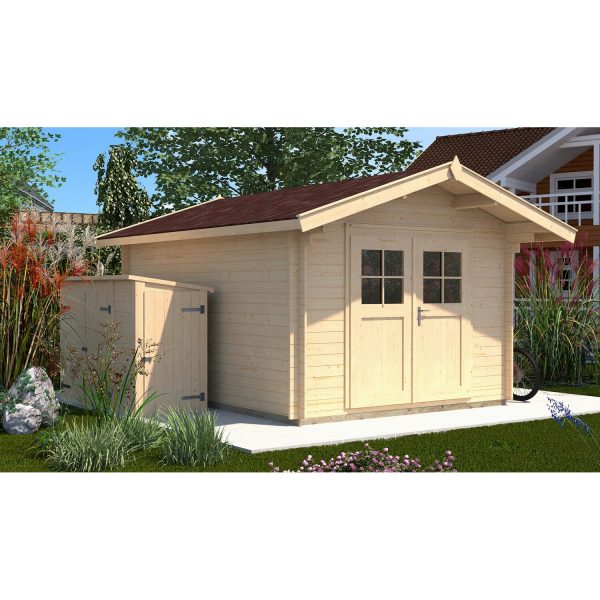 - Stabile Konstruktion: 28 mm starke Blockbohlenwände sorgen für Stabilität und Wärmedämmung.