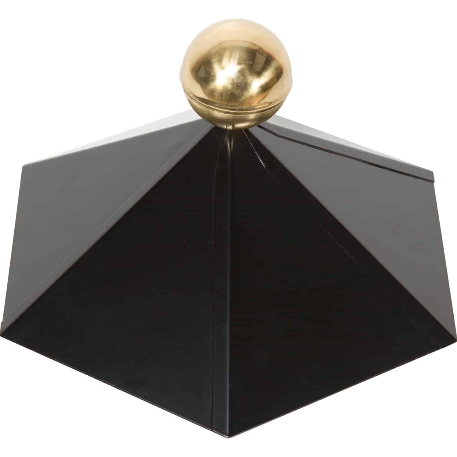 Die Dachhaube besteht aus hochwertigem, wetterfest behandeltem Holz. Die Kugel ist aus massivem Messing gefertigt.