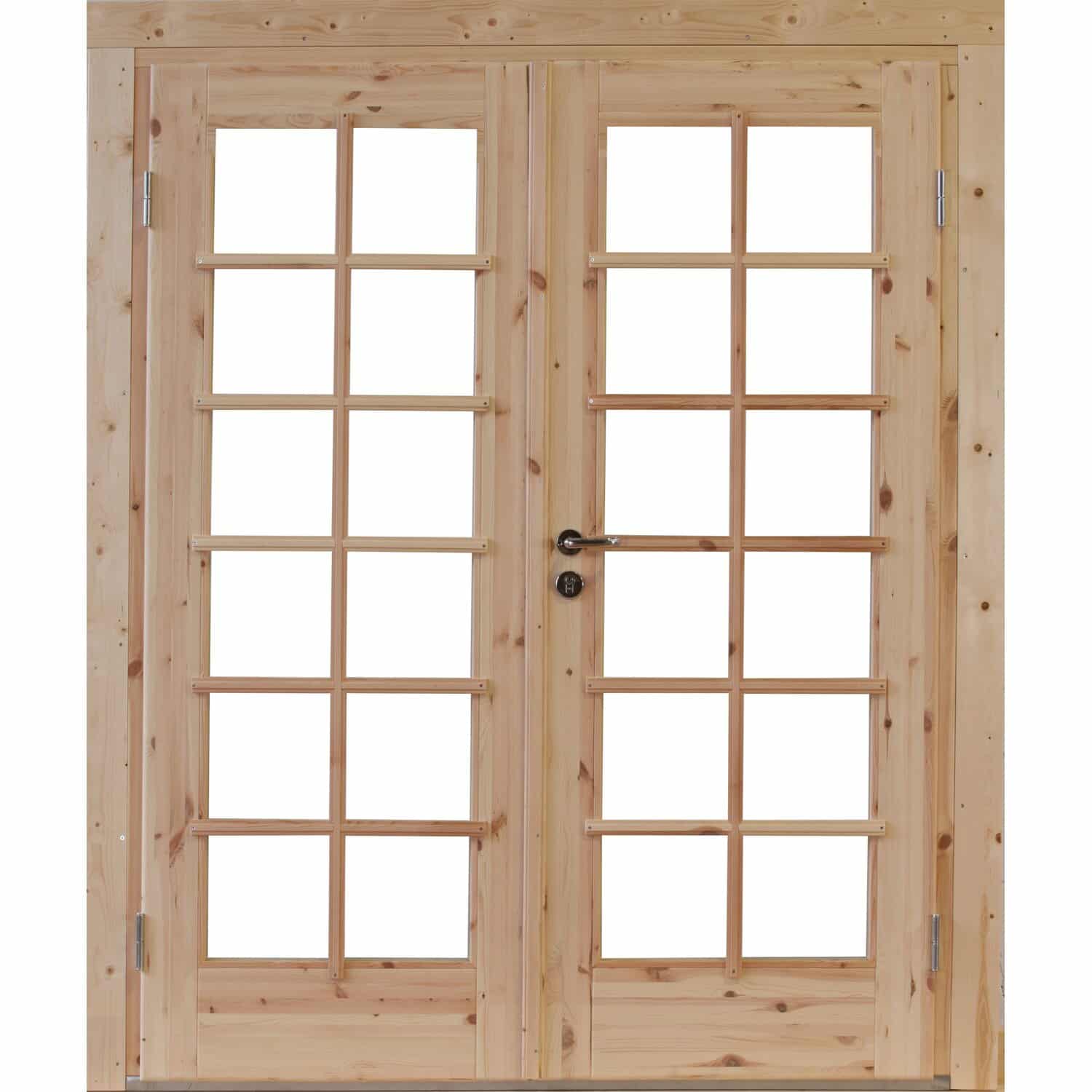 Die Doppeltür Lars 28 von Wolff Finnhaus ist mehr als nur eine Tür – sie ist ein Statement. Sie verbindet Funktionalität mit Ästhetik und verwandelt Ihr Gartenhaus in einen einladenden Rückzugsort. Ob als Zugang zu Ihrem Werkzeugschuppen, als stilvoller Eingang zu Ihrem Hobbyraum oder als Verbindung zu einer überdachten Terrasse – die Doppeltür Lars 28 setzt Akzente und wertet Ihr Gartenhaus optisch auf.