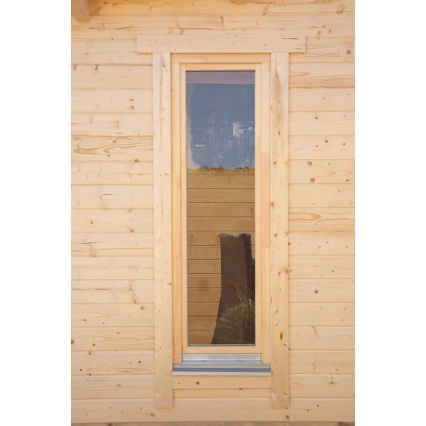 Das Fenster ist mit Isolierglas ausgestattet, das nicht nur vor Wärmeverlust schützt, sondern auch den Schall reduziert. So können Sie ungestört in Ihrem Gartenhaus entspannen oder arbeiten, ohne von Außengeräuschen belästigt zu werden.