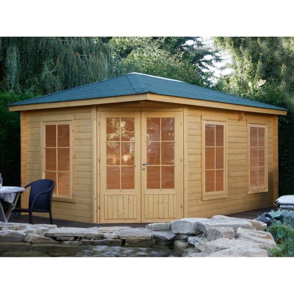 - Natürliche Schönheit: Die helle Farbe und die feine Maserung des Holzes verleihen dem Gartenhaus einen warmen und einladenden Charakter.