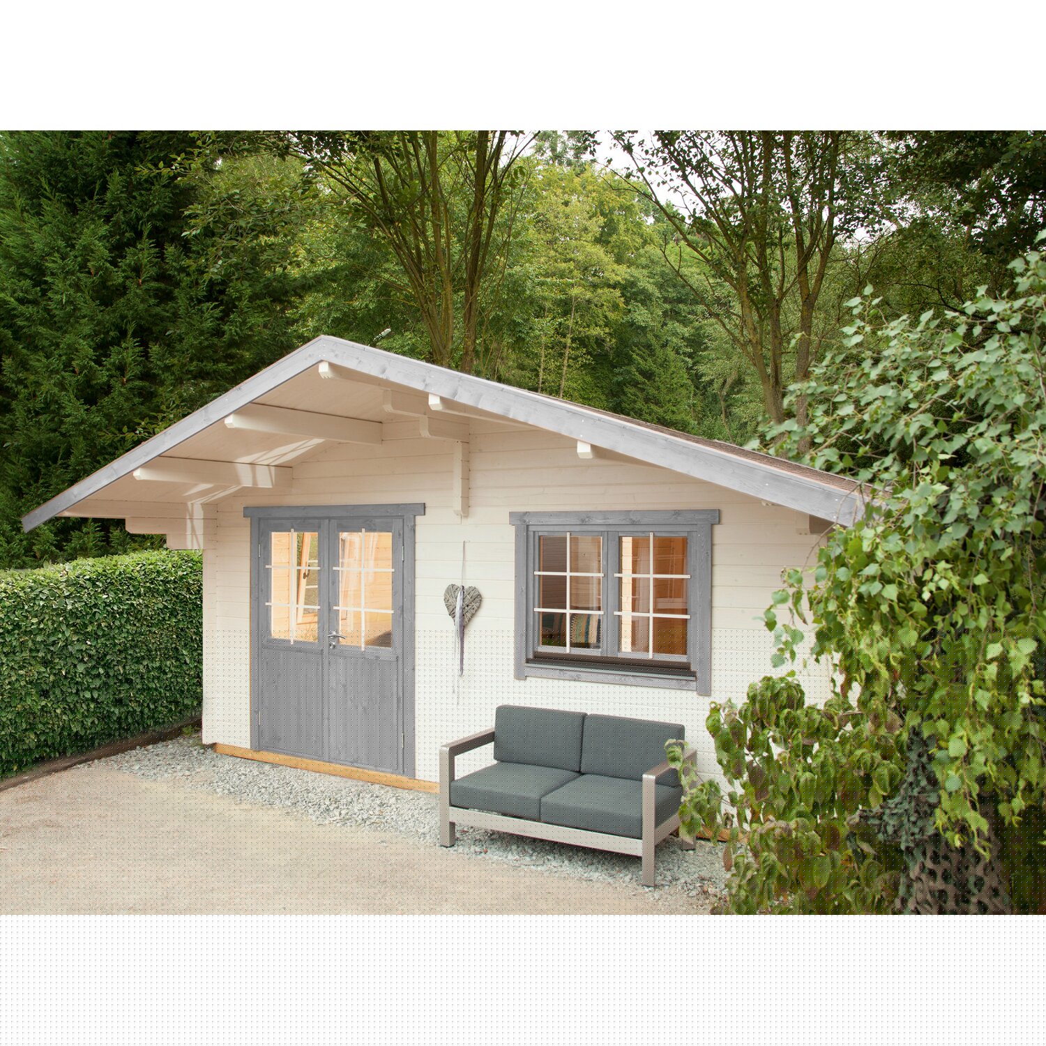 Die großen Fenster und die Doppeltür sorgen für viel Tageslicht im Innenraum und schaffen eine freundliche und einladende Atmosphäre. Die optional erhältlichen Anbauteile wie Vordächer und Seitenwände ermöglichen es Ihnen, das Gartenhaus noch individueller an Ihre Bedürfnisse anzupassen. So können Sie beispielsweise einen überdachten Freisitz schaffen, der zum Verweilen im Freien einlädt, oder einen zusätzlichen Lagerraum für Ihre Gartengeräte.
